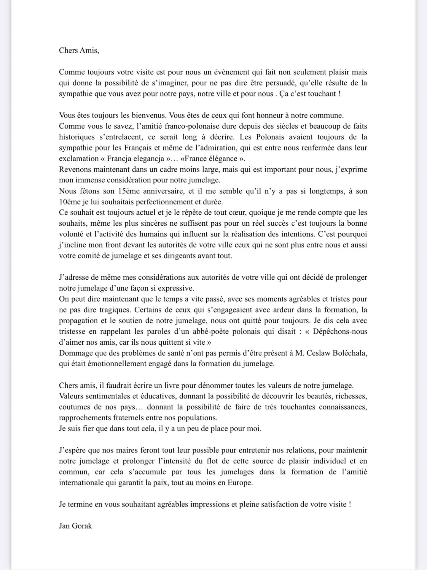 Allocution de Jan Gorak